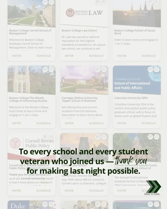 Service to School (S2S) is a 501(c)(3) non-profit that provides free college and grad school application counseling to U.S. military Veterans and Service Members.